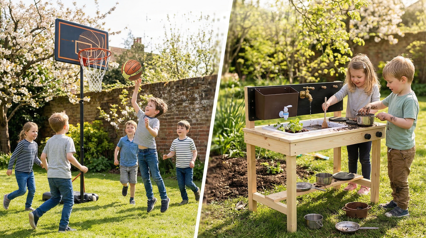 Get ready for outdoor fun with 10% off basketball and mud kitchens for a limited time.