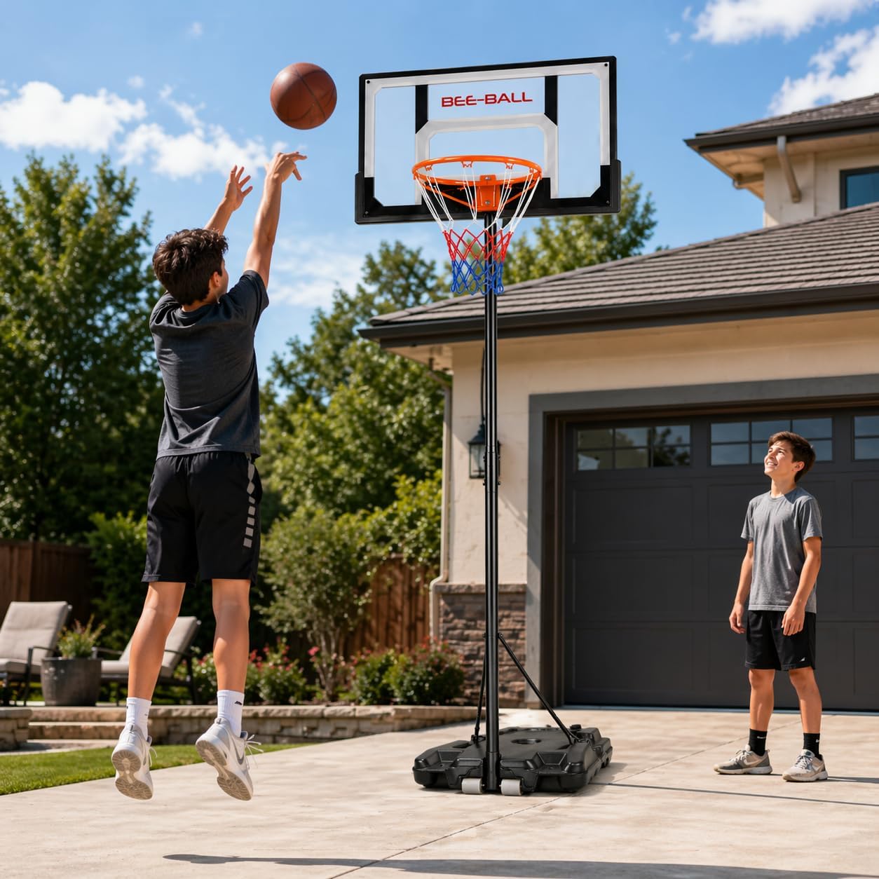 Bee-Ball Adjustable Basketball Hoop & Stand (3.3–10ft) – Full NBA Height Outdoor System
