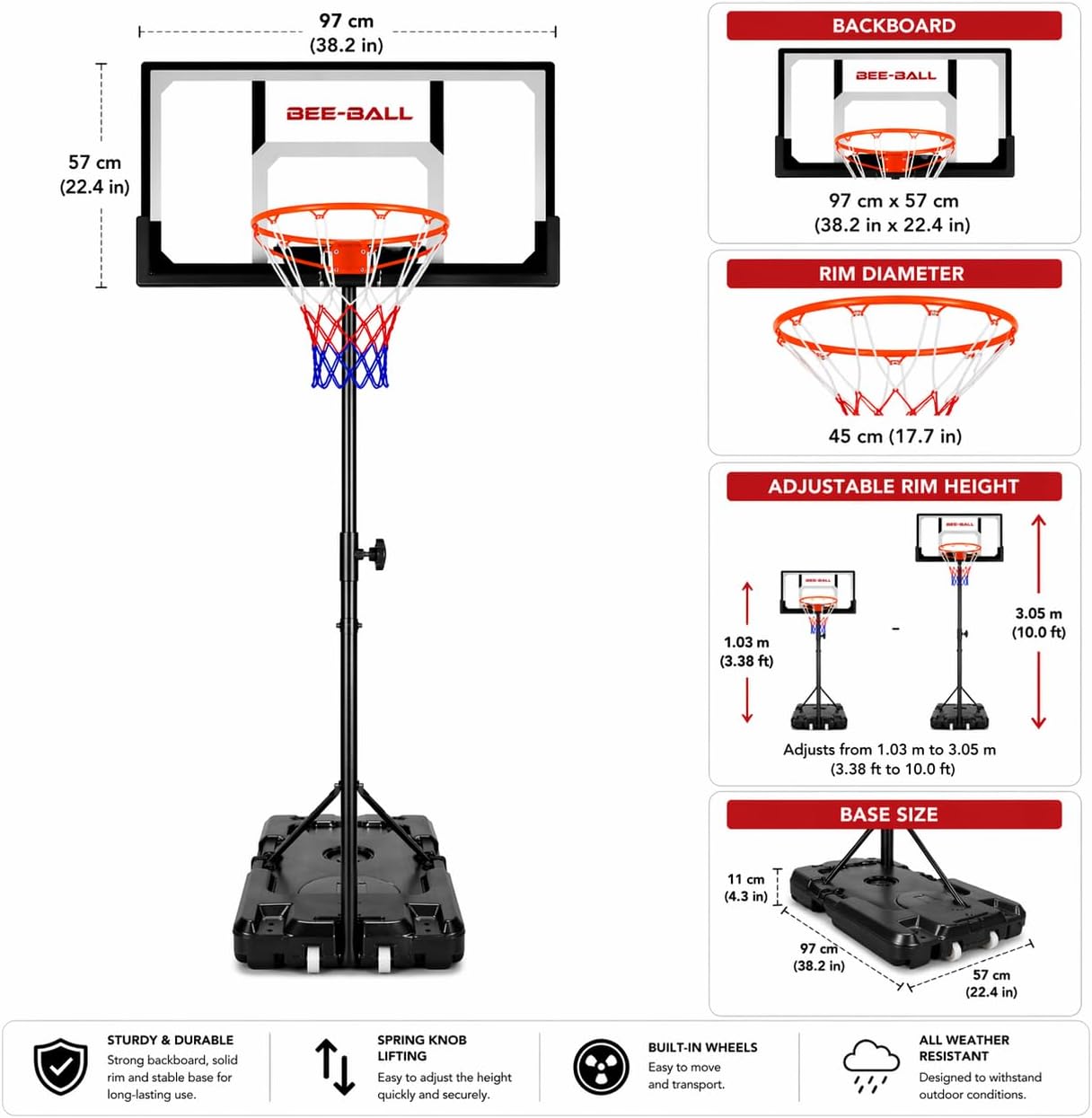 Add Bee-Ball Adjustable Basketball Hoop & Stand (3.3–10ft) – Full NBA Height Outdoor System to the cart