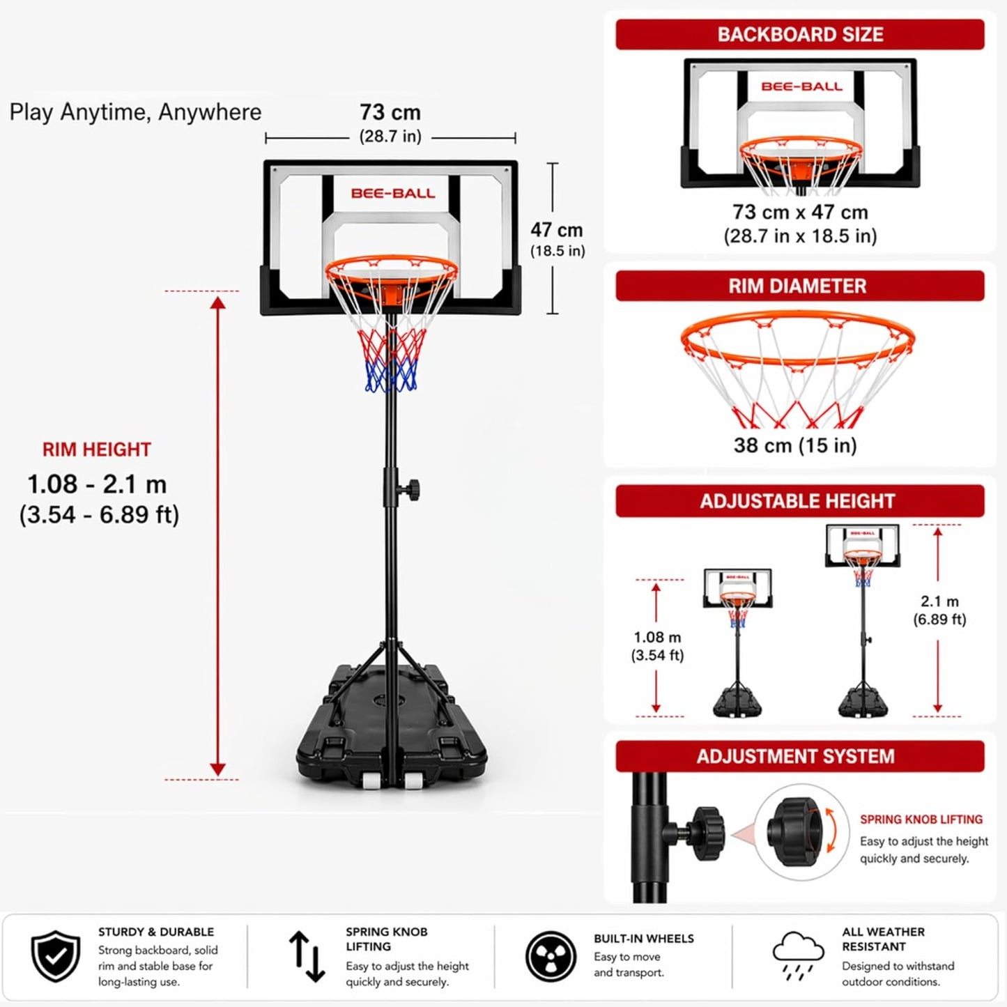 Add Bee-Ball Junior Basketball Hoop & Stand (3.5–7ft) – Adjustable Portable Kids Basketball System to the cart