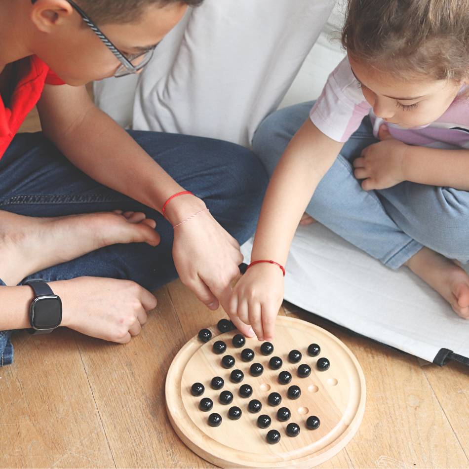 - Compact & Portable: Solitaire is ideal for travel, the 23cm board fits neatly into the included cotton tote bag.