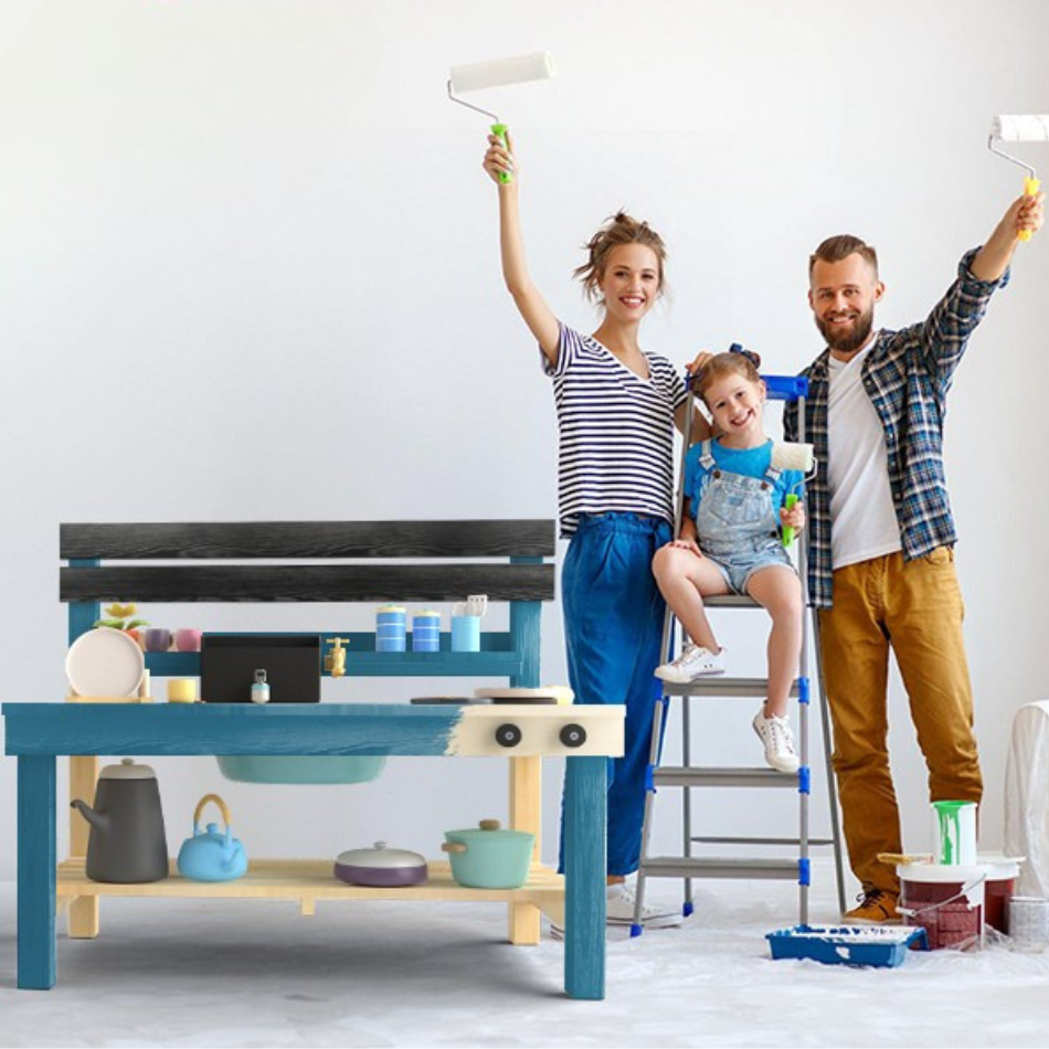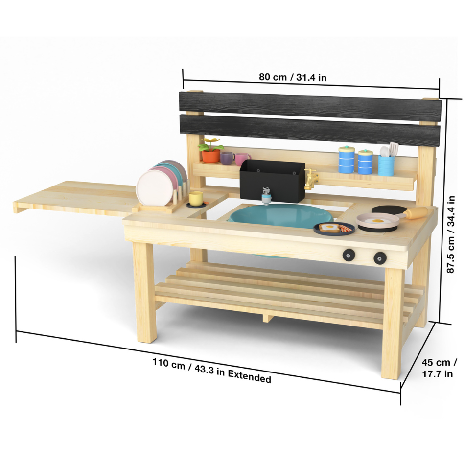 Creative Expression: Capture favourite mud pie recipes and shopping lists on the large chalkboard, or decorate the smoothed fir wood with their favourite colours to personalise it and make it their own.