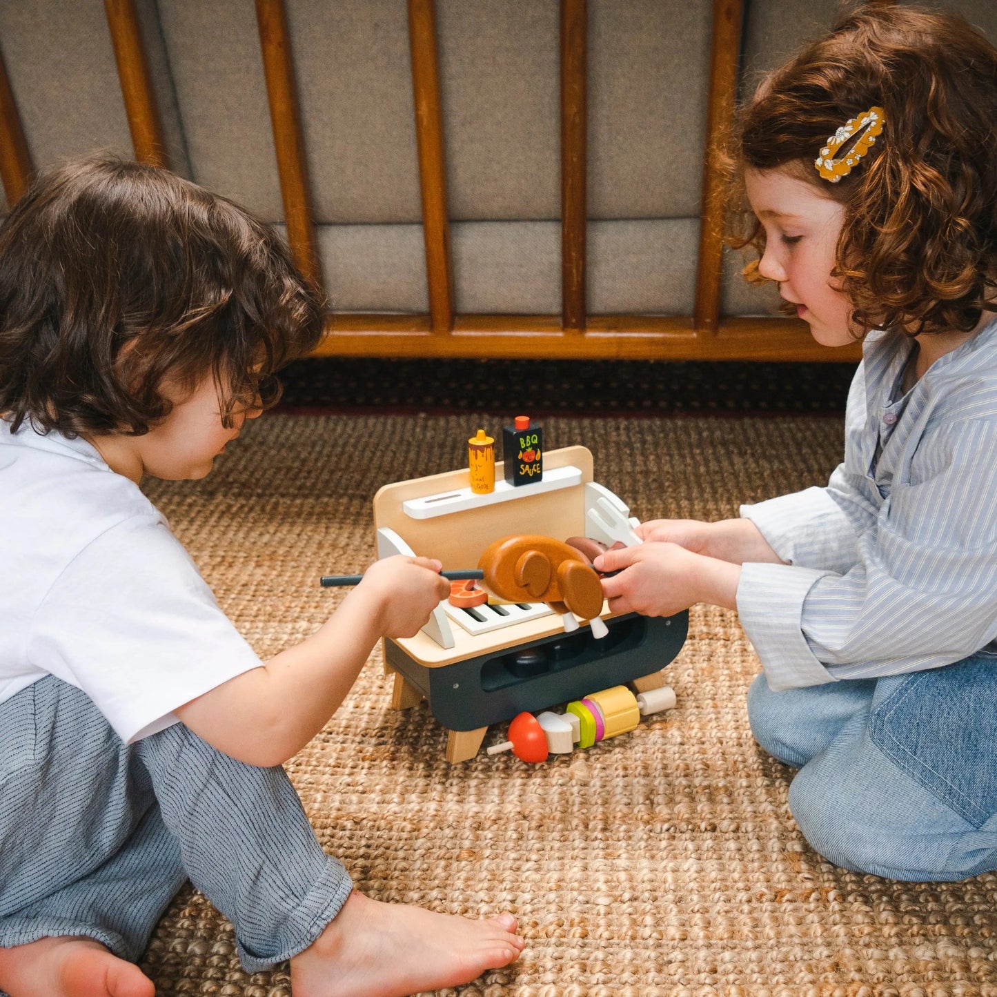 A self standing wooden barbeque toy with removable grill and loads of accessories!