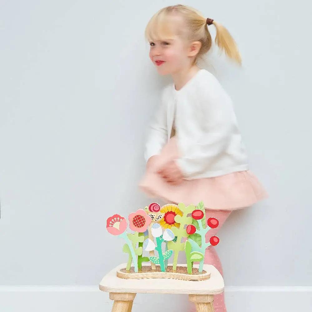 Encourage imaginative gardening play with this Wooden Flower Bed Toy by Tender Leaf Toys. Kids can plant and grow 10 different wooden plants, exploring the stages from seedling to seed head while learning about nature.